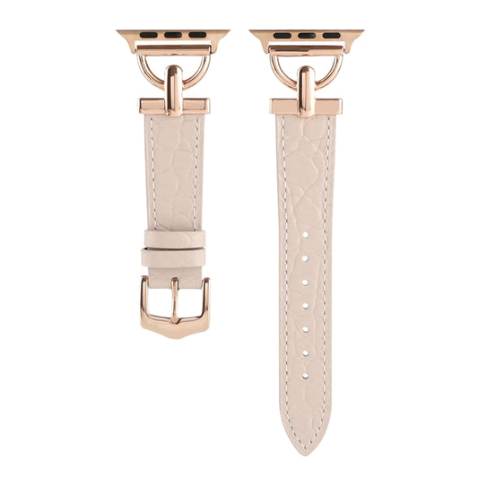 Bracelet de montre en cuir véritable Cocodile à boucle en D pour Apple Watch Ultra 49 mm et Watch Ultra 2 49 mm / Series 9, 8 et 7 45 mm / SE 3, SE 2, 6, SE, 5 et 4 44 mm / 3, 2 et 1 42 mm (rose)