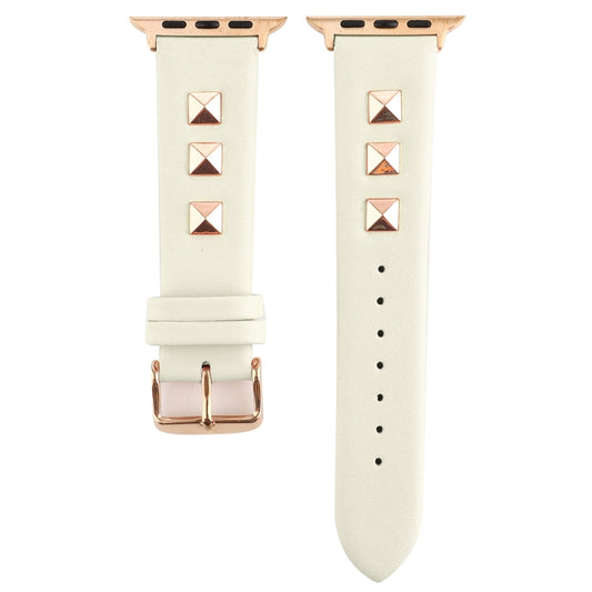 Bracelet de montre en cuir véritable riveté à une rangée pour Apple Watch Ultra 49 mm et Watch Ultra 2 49 mm / Series 9, 8 et 7 45 mm / SE 3, SE 2, 6, SE, 5 et 4 44 mm / 3, 2 et 1 42 mm (beige or rose)
