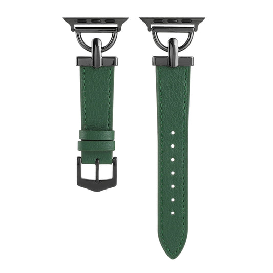 Pour Apple Watch Ultra 49 mm et Watch Ultra 2 49 mm / Series 9, 8 et 7 45 mm / SE 3, SE 2, 6, SE, 5 et 4 44 mm / 3, 2 et 1 42 mm Bracelet de montre en cuir véritable uni avec boucle en D (vert foncé)