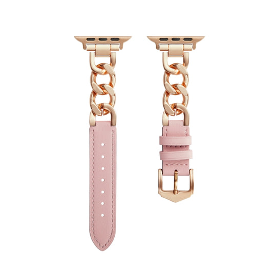 Chain + Leather Watch Band For Apple Watch Ultra 49mm&Watch Ultra 2 49mm / Series 9&8&7 45mm / SE 3&SE 2&6&SE&5&4 44mm / 3&2&1 42mm (Rose Gold + Pink)