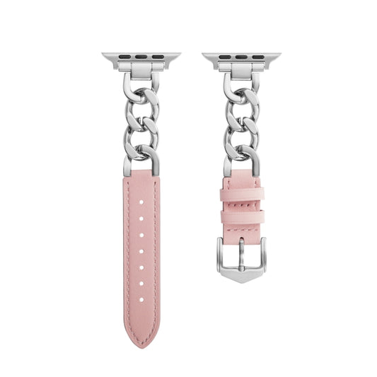 Chain + Leather Watch Band For Apple Watch Ultra 49mm&Watch Ultra 2 49mm / Series 9&8&7 45mm / SE 3&SE 2&6&SE&5&4 44mm / 3&2&1 42mm (Silver + Pink)