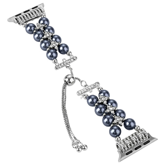 Double Row Beads Telescopic Chain Watch Band For Apple Watch Series 9&8&7 41mm / SE 3&SE 2&6&SE&5&4 40mm / 3&2&1 38mm(Grey)