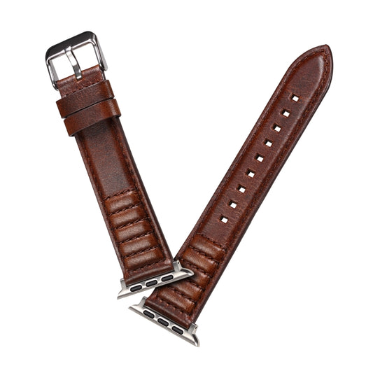 Oil Wax Genuine Leather Watch Band For Apple Watch Ultra 49mm&Watch Ultra 2 49mm / Series 9&8&7 45mm / SE 3&SE 2&6&SE&5&4 44mm / 3&2&1 42mm (Brown)