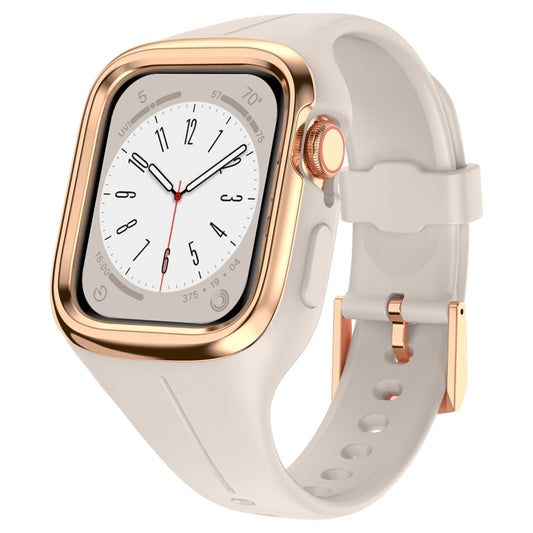 Bracelet de montre en silicone avec cadre en acier inoxydable pour Apple Watch Series 9&8&7 41 mm / SE 3&SE 2&6&SE&5&4 40 mm / 3&2&1 38 mm (Starlight)
