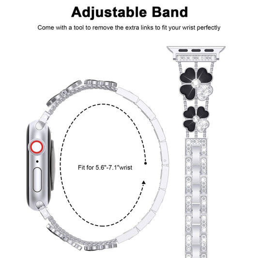 Pour Apple Watch 8 41 mm Petal Metal Diamond Watch Band (argent + noir)