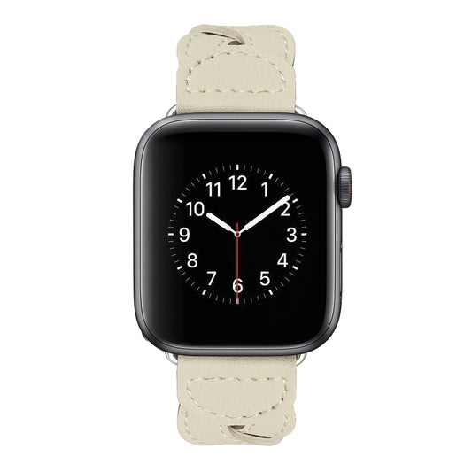 Twist Stitched Genuine Leather Watch Band For Apple Watch Ultra 49mm&Watch Ultra 2 49mm / Series 9&8&7 45mm / SE 3&SE 2&6&SE&5&4 44mm / 3&2&1 42mm(Beige)