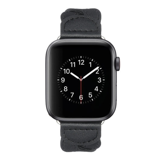 Twist Stitched Genuine Leather Watch Band For Apple Watch Series 9&8&7 41mm / SE 3&SE 2&6&SE&5&4 40mm / 3&2&1 38mm(Black)