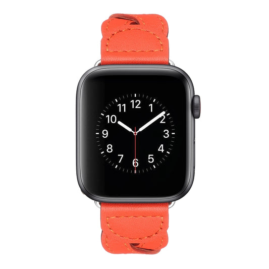 Twist Stitched Genuine Leather Watch Band For Apple Watch Series 9&8&7 41mm / SE 3&SE 2&6&SE&5&4 40mm / 3&2&1 38mm(Orange)