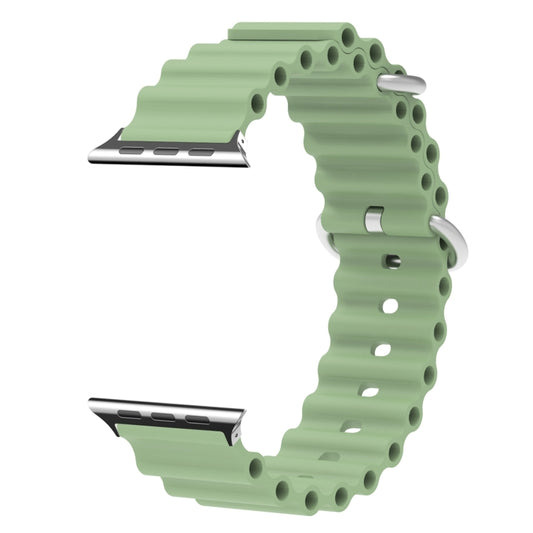 Ocean Silicone Metal Head Watch Band For Apple Watch Series 9&8&7 41mm / SE 3&SE 2&6&SE&5&4 40mm / 3&2&1 38mm(Light Geen)