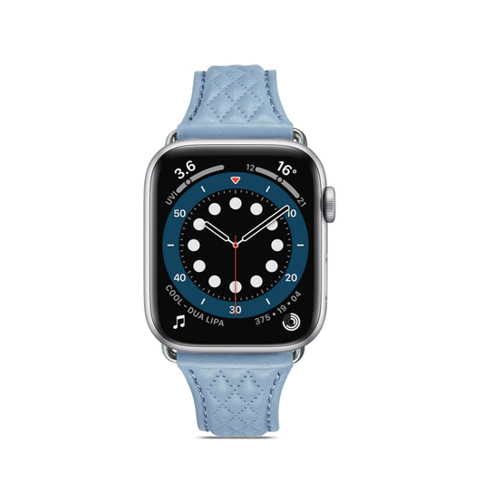 Bracelet de montre en cuir véritable Rhombus pour Apple Watch Series 8 et 7 41 mm / SE 2 et 6 et SE et 5 et 4 40 mm / 3 et 2 et 1 38 mm (bleu clair)