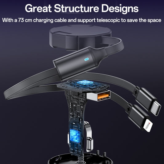 Yesido Y61 53W Type-C + 8 Pin Retractable Cable 3 in 1 Car Charger(Black)