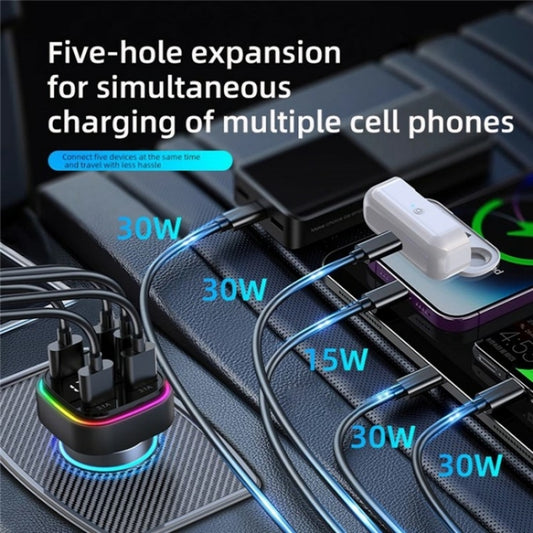 K34 With LED Display 5 Port USB Car Charger Cigarette Lighter Adapter