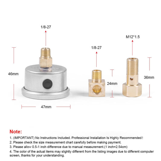 Manomètre de pression de carburant universel pour voiture 1/8 NPT 0-160 psi avec adaptateur