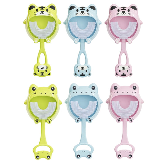 S8 2pcs Children Cartoon Animal Manual U-shaped Silicone Toothbrush for 2-12 Years Old(Blue Frog)