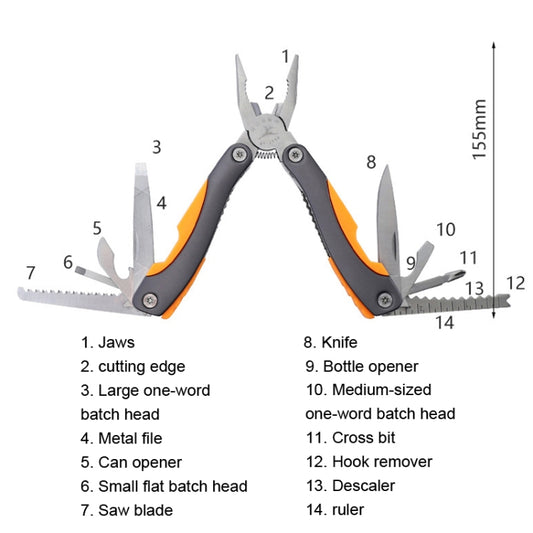 Pince multifonctionnelle 14 en 1, combinaison pliante, gadget EDC, équipement de survie de camping, outil universel, pince