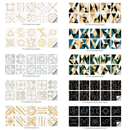 Autocollant mural à motif géométrique pour carrelage d'escalier, résistant à l'eau et à l'huile, pour cuisinière de cuisine, spécification : M : 15 x 15 cm (HT-012 doré)