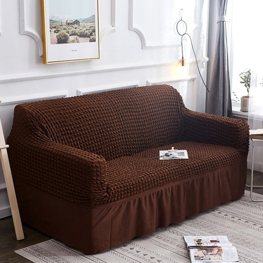 Living Room Stretch Full Coverage Skirt Style Sofa Cover, Size: Double M 145-185cm(One-color Middle Coffee)
