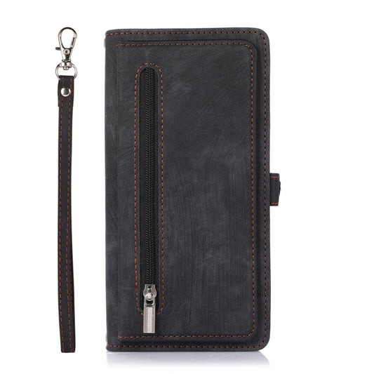 Pour iPhone 13 Pro Max Zipper Card Slot Buckle Wallet Leather Phone Case (Noir)