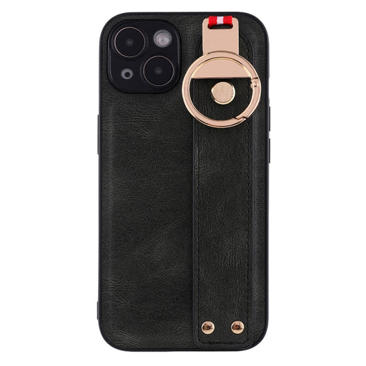Pour iPhone 14 Plus Étui de téléphone en cuir avec bracelet (noir)