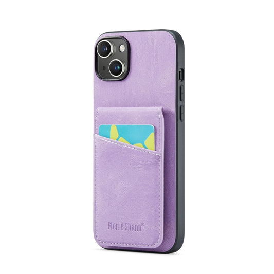 Pour iPhone 14 Plus Fierre Shann Crazy Horse Porte-cartes Coque arrière en PU pour téléphone (violet)