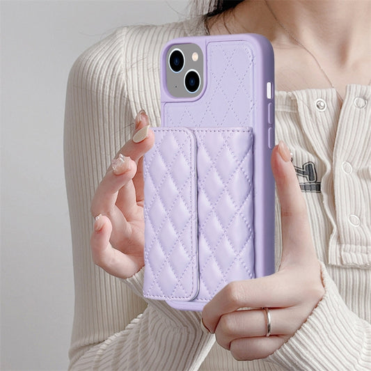 Pour iPhone 14 Étui portefeuille horizontal en cuir rhombique (violet)