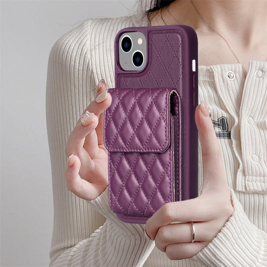 For iPhone 14 Vertical Wallet Rhombic Leather Phone Case(Dark Purple)