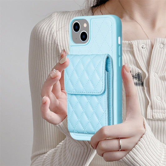 Étui portefeuille vertical en cuir rhombique pour iPhone 14 (bleu)