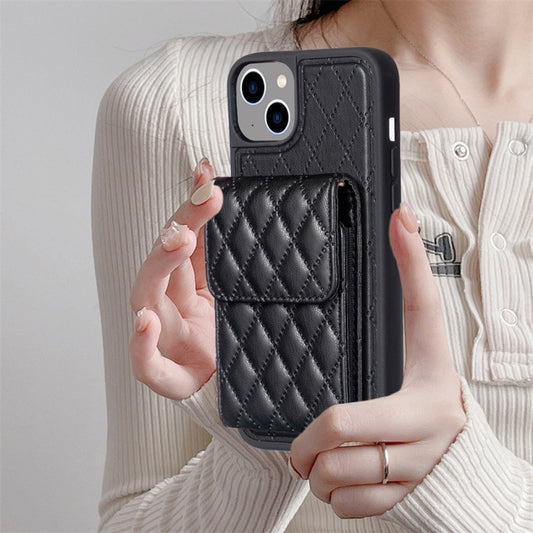 Étui portefeuille vertical en cuir rhombique pour iPhone 14 (noir)