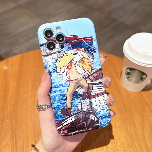 For iPhone 14 Oil Painting Pattern Glossy PC Phone Case(Jump in the Boat)