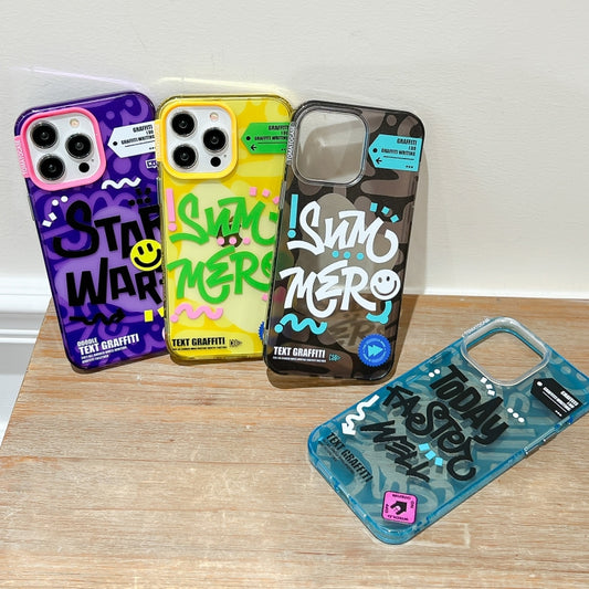 Pour iPhone 15 TOMATO Text Graffiti TPU Hybrid PC Phone Case (Noir)