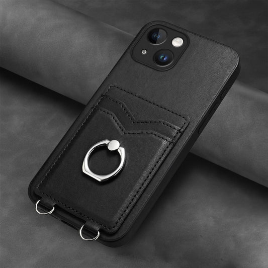 For iPhone 15 R20 Ring Card Holder Phone Case(Black)