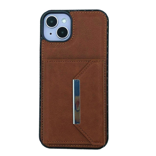 For iPhone 15 Solid Color Metal Buckle Card Slots Bag Phone Case(Brown)