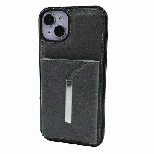 For iPhone 15 Solid Color Metal Buckle Card Slots Bag Phone Case(Grey)