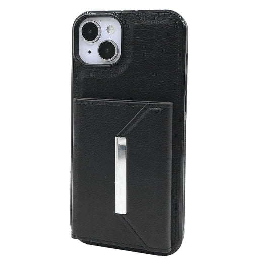 For iPhone 15 Solid Color Metal Buckle Card Slots Bag Phone Case(Black)