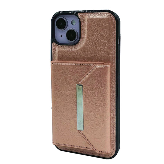 For iPhone 15 Solid Color Metal Buckle Card Slots Bag Phone Case(Rose Gold)
