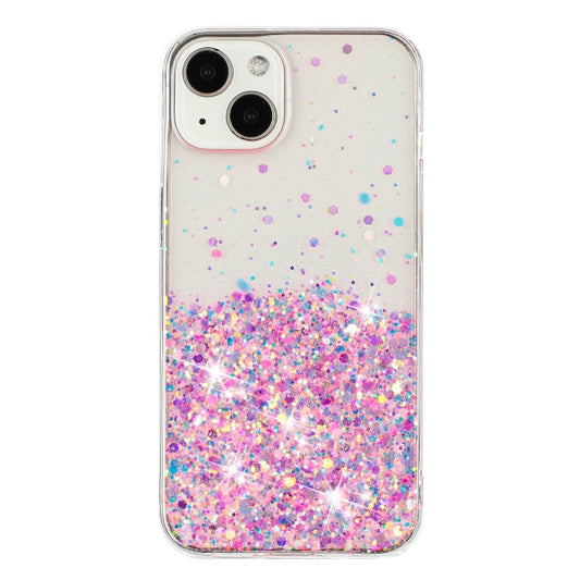 For iPhone 15 Transparent Frame Noctilucent Glitter Powder TPU Phone Case(Pink)