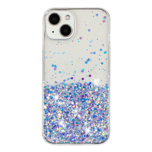 For iPhone 15 Transparent Frame Glitter Powder TPU Phone Case(Blue)