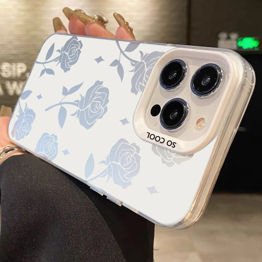 For iPhone 15 Silver Painting PC Hybrid TPU Phone Case(Hollow Rose White)