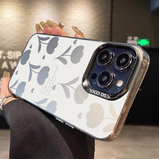 For iPhone 15 Silver Painting PC Hybrid TPU Phone Case(Hollow Tulips Black)