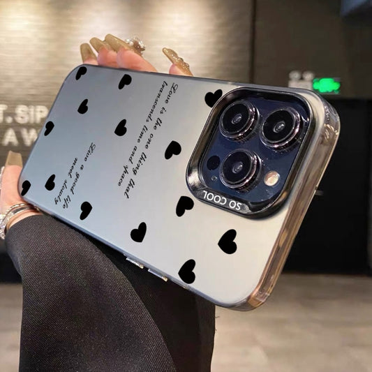 For iPhone 15 Silver Painting PC Hybrid TPU Phone Case(Love Hearts Black)