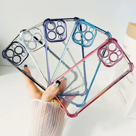For iPhone 15 Electrpolated Glitter Four-corner Shockproof Space TPU Phone Case(Gradient Silver)
