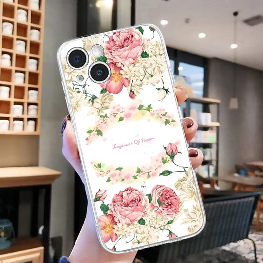 Pour iPhone 15 Motif de dessin coloré Coque de téléphone en TPU transparent (pivoine)