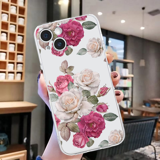 Pour iPhone 15 Motif de dessin coloré Coque de téléphone en TPU transparente (fleur rose)