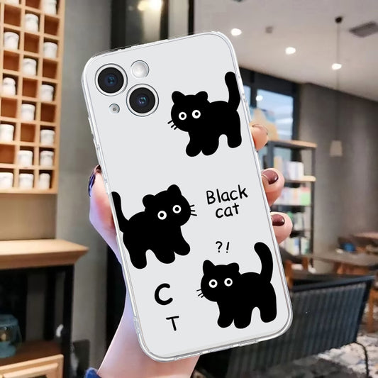 Pour iPhone 15 Motif de dessin coloré Coque de téléphone en TPU transparent (chat noir)