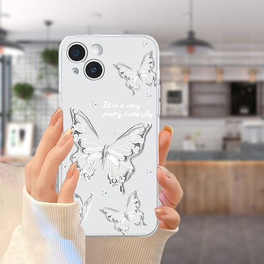 Coque de téléphone en TPU transparente avec motif de dessin coloré pour iPhone 15 (papillons)
