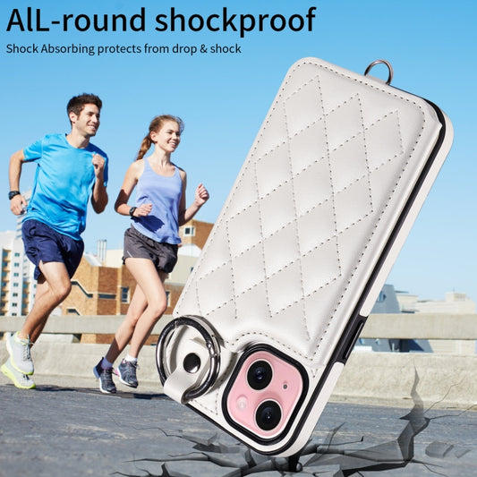 For iPhone 15 Rhombic Texture Card Bag Phone Case with Short Lanyard(White)