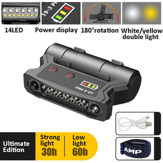 Lampe frontale de pêche à induction avec clip pour pêche de nuit, petite lampe super brillante rechargeable pour casquette, style : édition ultime (noir)