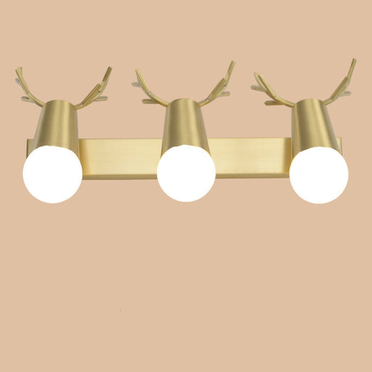 three heads Copper Antler Wall Lamp Mirror Headlight Living Room Stairs Light Creative Bedroom Bedside Lamp(white light 5W)