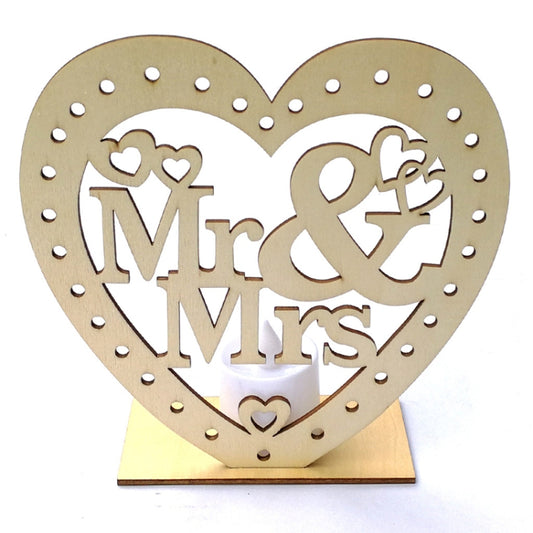 2 PCS Creative Heart Shaped Wooden Decoration Romantic Wooden Sign LED Candle Light(JM01456)