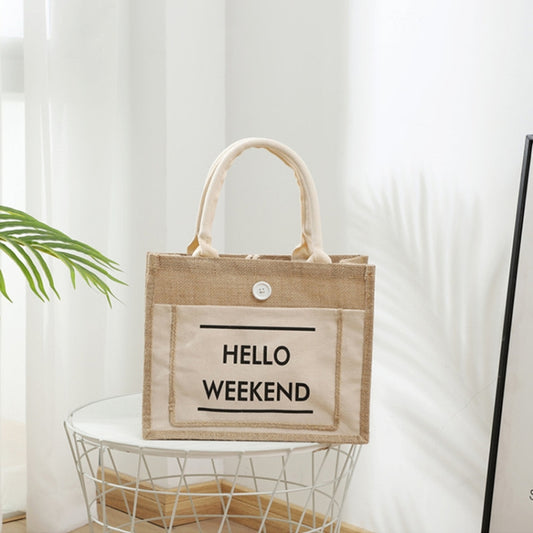 Portable Shopping Bag Waterproof Linen Lunch Bag(White)
